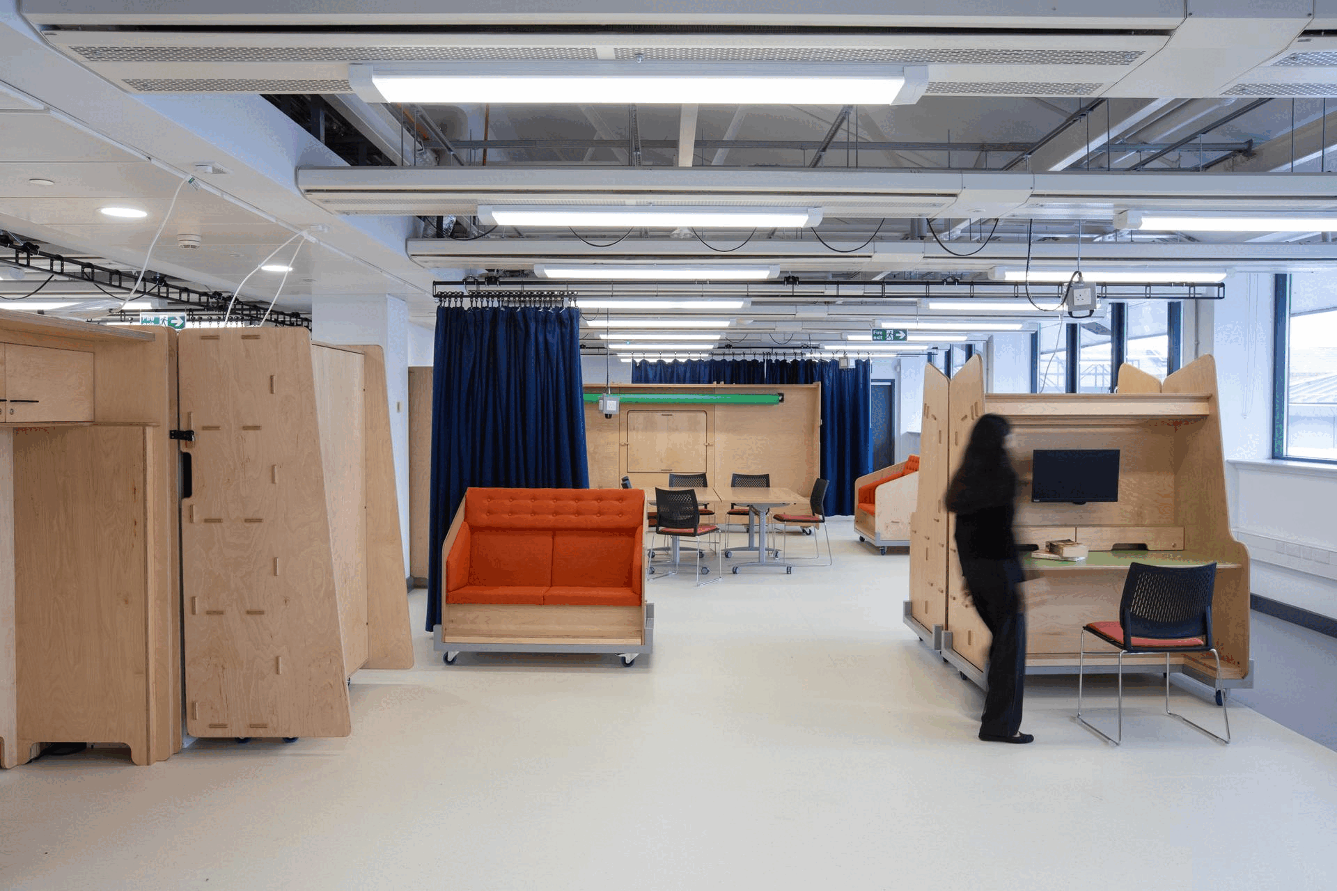 Our proposals were developed through a series of open workshops with library users which established a need to improve digital literacy and offer access to specialised tools and equipment. Two years on, EverySpace continues to provide teenagers with access to digital skills, providing opportunities to explore photography, videography, editing, and podcasting. The new installation at Cambridge Central expands on the potential of our equipment even further. These latest additions feature a new workstation module, a ‘classroom-in-a-box’, and a mess station equipped with a mobile sink, creating new learning and community use opportunities. Importantly, flexibility and versatility have been built into the designs from their conception. This means that they can accommodate all kinds of scenarios, catering for different group sizes, unexpected users and as-yet unknown future uses. We look forward to seeing the continuing impact this open-ended toolkit can enable for local libraries and their users. Read more about the project here.