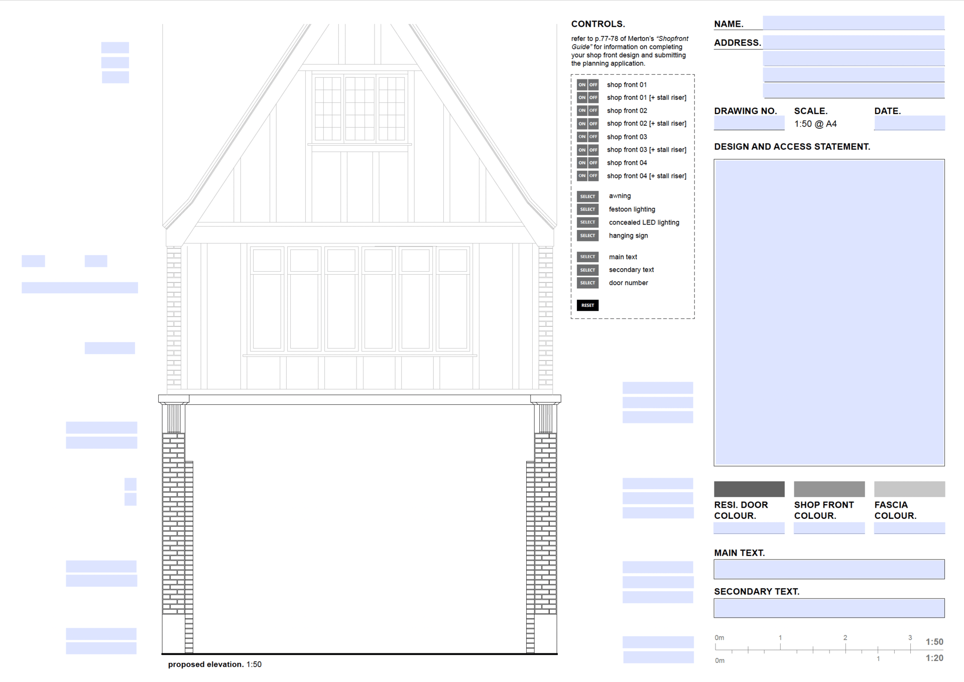 In order to help individual property owners to make and enact the right decisions, we developed a set of interactive planning template drawings for each of the borough’s high street typologies. These can be easily customised within a web browser, enabling business owners to arrive at compliant shop front designs and submit planning applications without the need for an architect or professional designer. The drawings are coupled with detailed guidance for maintenance and repair, ensuring that businesses are able to make the most of their investment.