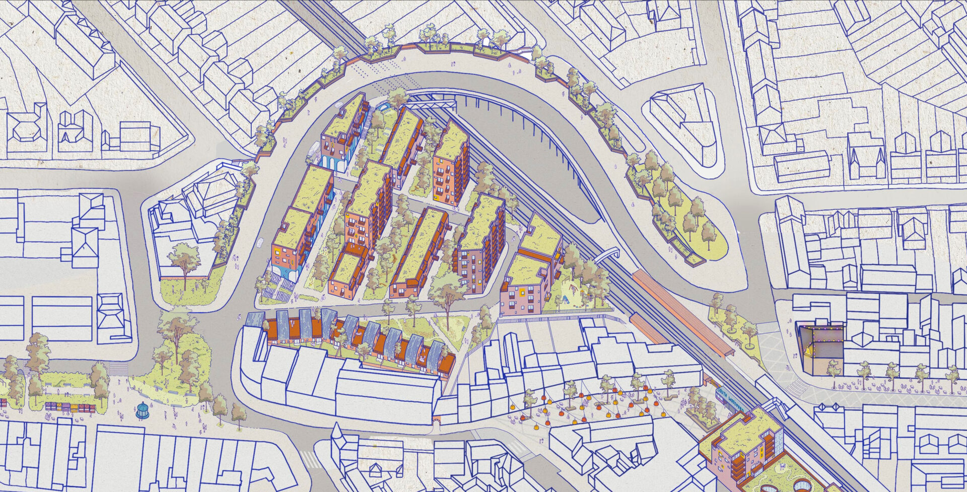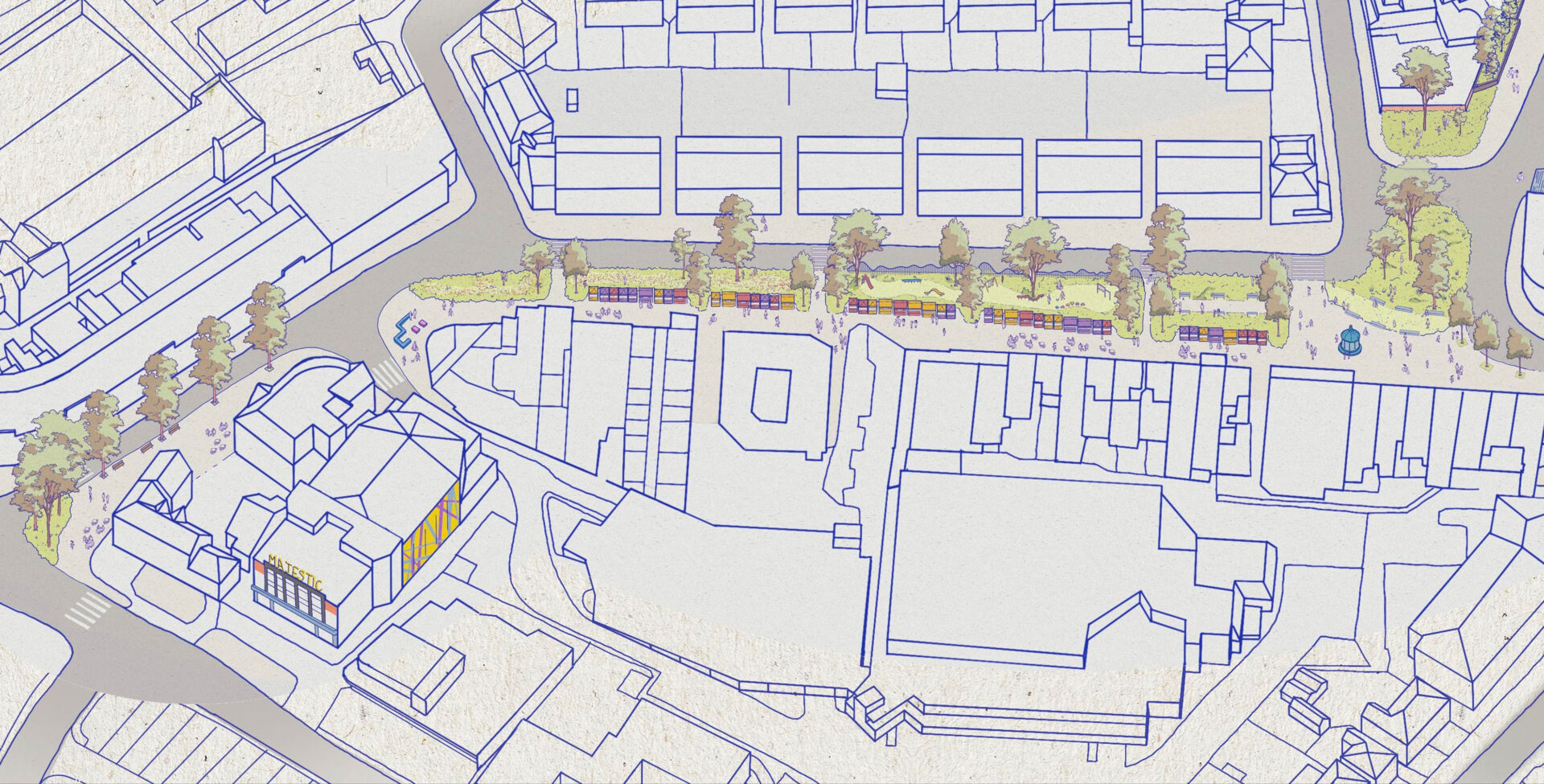 We began by exploring together how each of the site allocations and the local high street can honour these priorities, while also responding to local housing need. Through conversation at the weekly street market, it quickly became clear that proposals would need to be articulated visually to enable local people to understand their impact.
